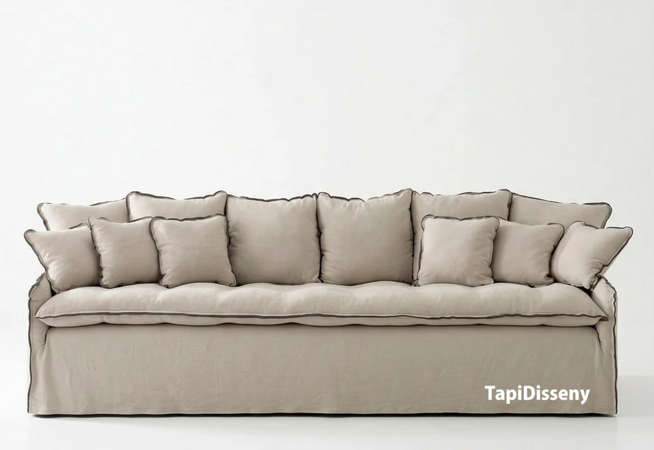 El Goya cobra todo su sentido a través de los materiales. La elección de tejidos naturales como el lino, el algodón o mezclas con viscosa responde a una búsqueda de sensaciones auténticas. No solo se trata de cómo se ve el sofá, sino de cómo se siente.